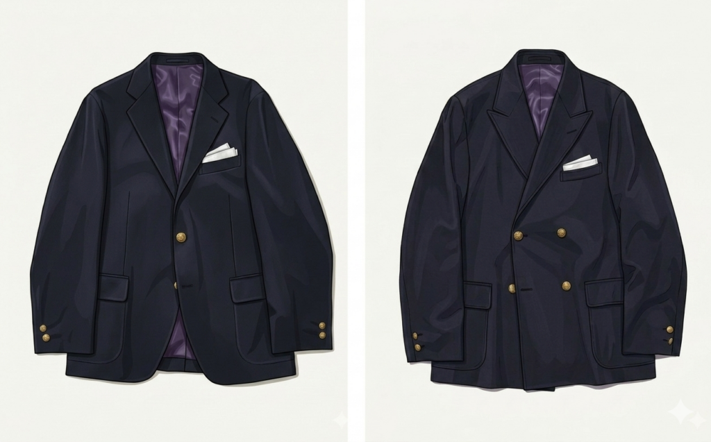 シングルブレストとダブルブレストの紺ブレ
