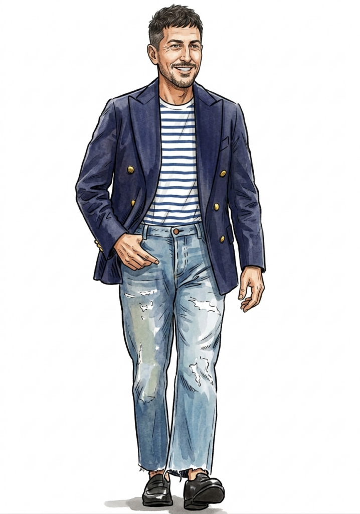 そこで閃いたのが紺ブレという選択肢でした。